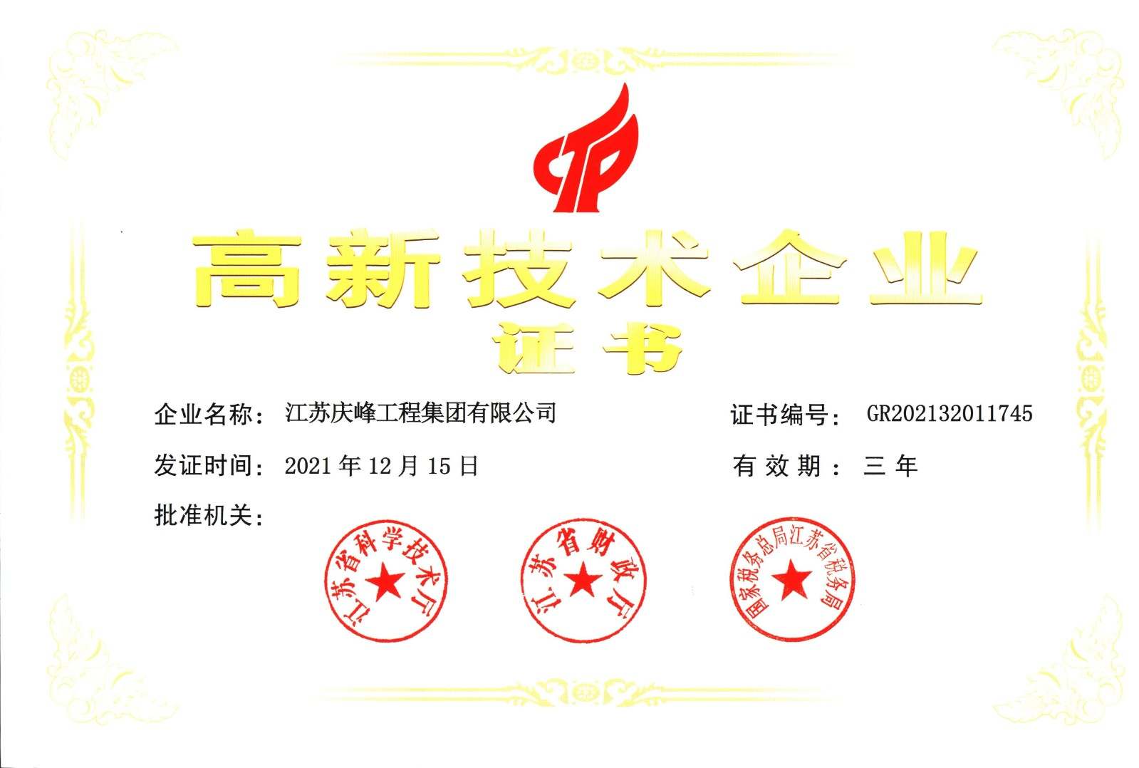 您當前的位置:首頁 - 關于慶峰 - 獲獎證書